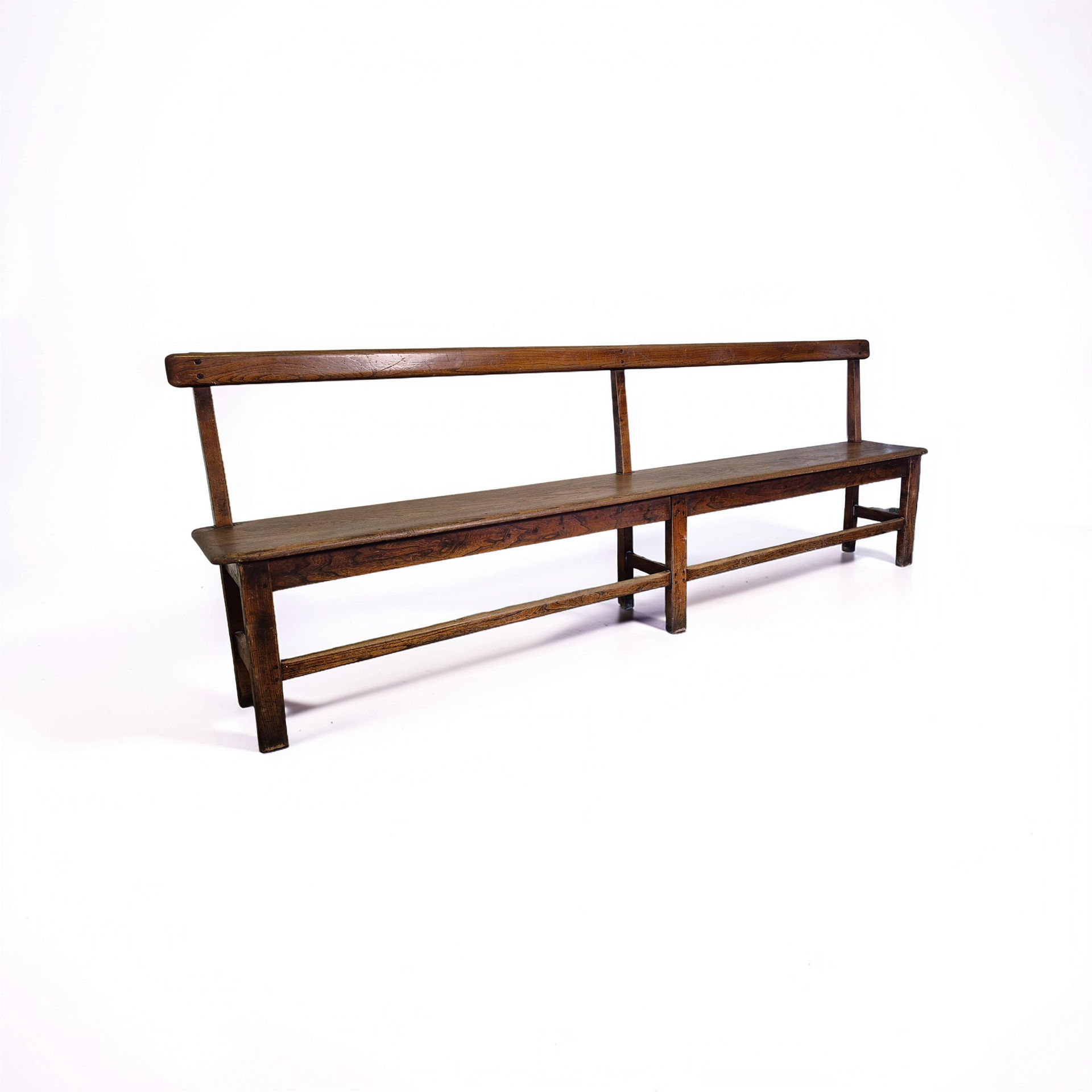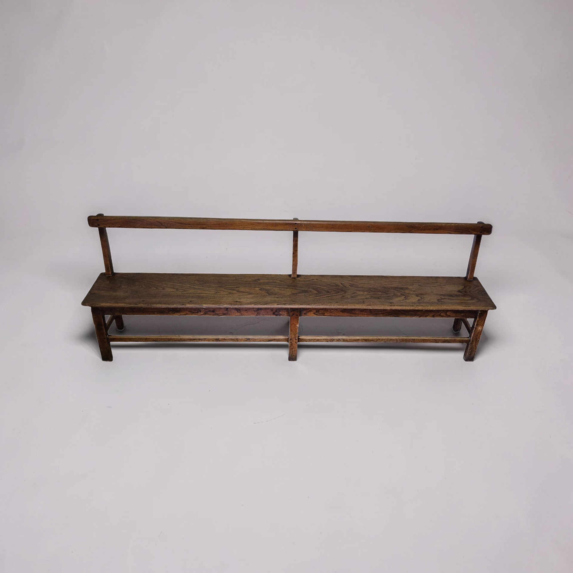 Antique oak bench. The seat is made from a single piece of wood. Hand crafted minimalist bench that was created with functionality in mind. Its minimal depth of 36cm makes it ideal as a hall bench or as a bench at a long dining table.