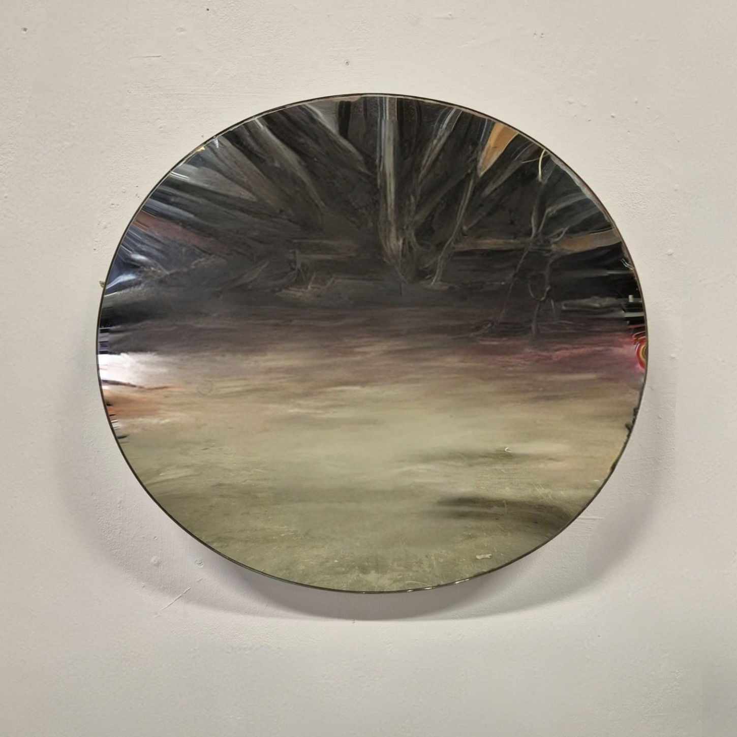 The diameter is 80cm. A size that will definitely be an eye catcher in your interior. The mirror has some weathered spots located on the outside edge of the mirror.