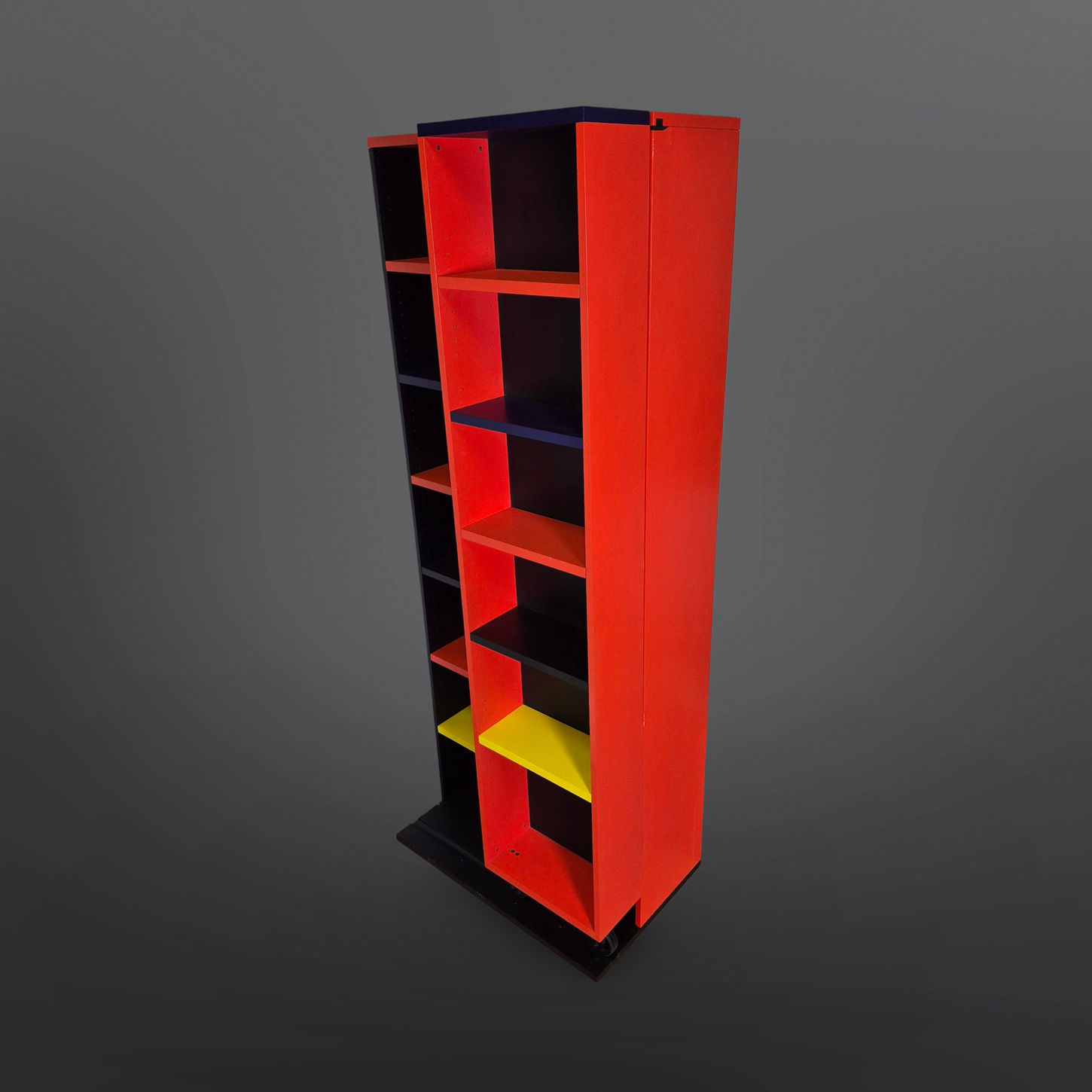 Post modern bookcase in the style of the Memphis group. Made in Scandinavia and purchased by the first owner in 1979.