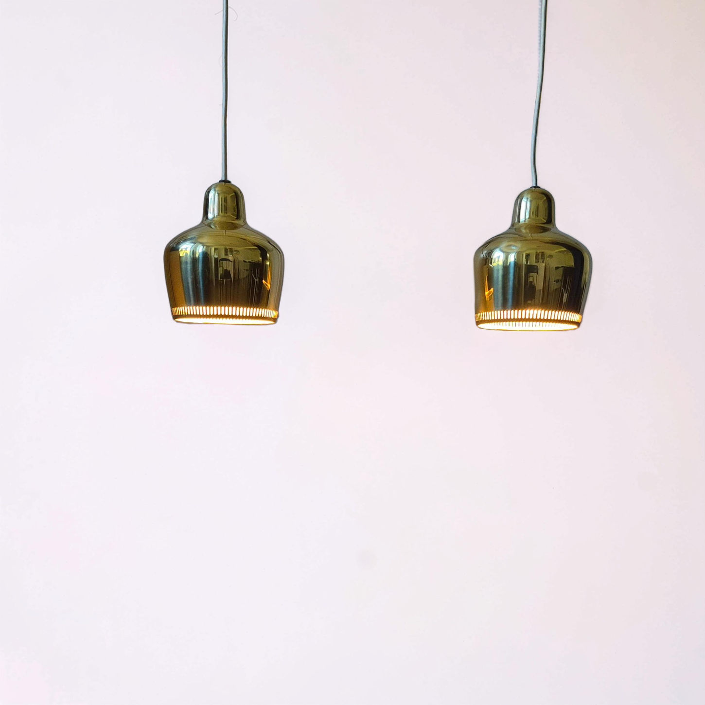 Set of 2 early production Golden Bell lamps by Alvar Aalto, Denmark 1950s
