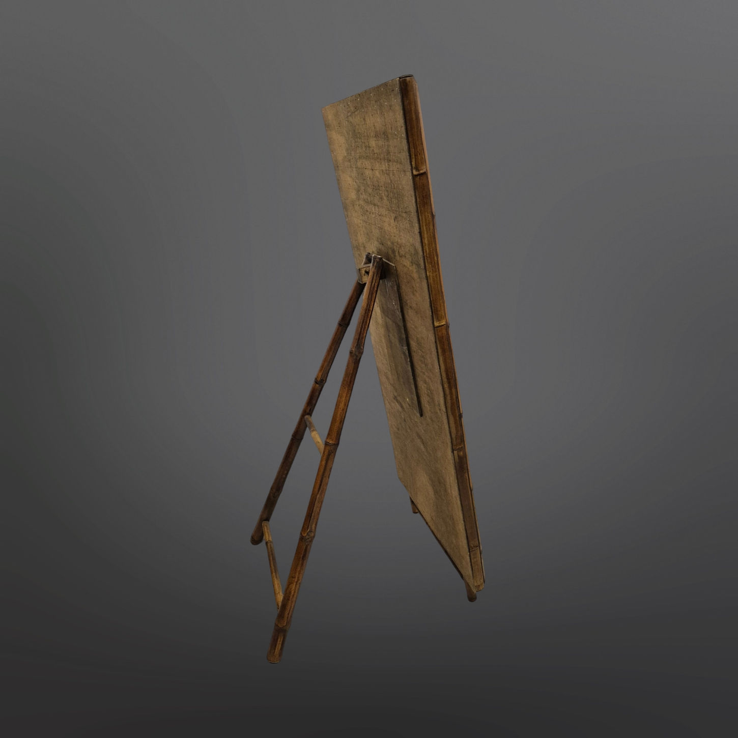 Mid century freestanding mirror. The frame and the stand are made from bamboo. It has a magnificent patina with rich natural colors.